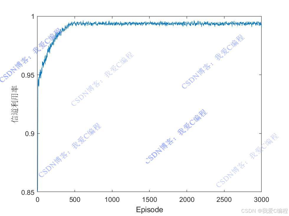 动作空间A定义为物联网设备可以选择的信道接入动作。在每个状态下,设备可以从可用信道集合C中选择一个信道进行数据传输,即A={a1,a2,⋯,anumchannels},其中ai表示选择信道ci进行传输。这与代码中的实现逻辑一致,设备通过选择ai来确定使用哪个信道进行数据发送。