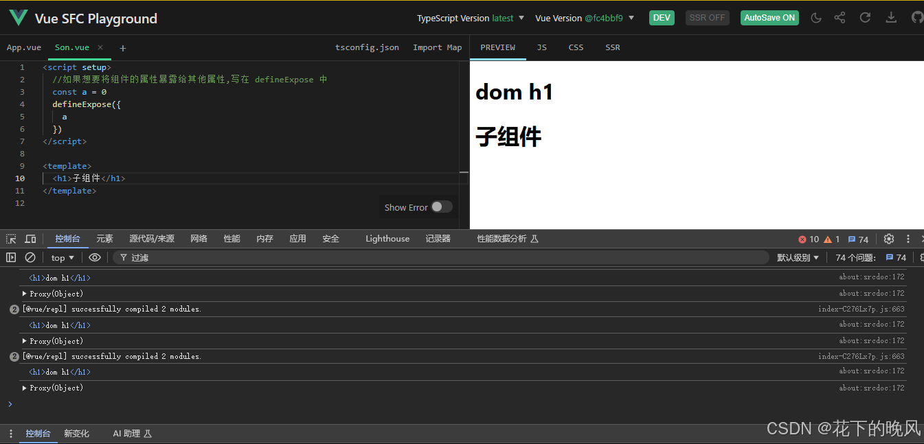 </script><template><h1 ref="h1Ref">dom h1</h1><Son ref="sonRef"/>