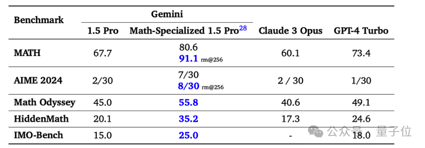 MATH数据集包含竞赛级别的数学题,目前不用多次采样等额外方法,最高分是谷歌Gemini 1.5 Pro数学强化版的80.6%。