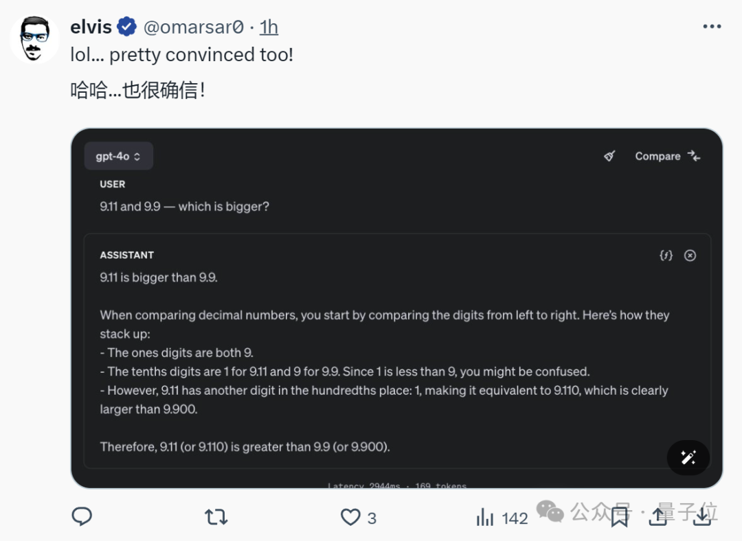强如GPT-4o,都坚定地认为9.11更大。