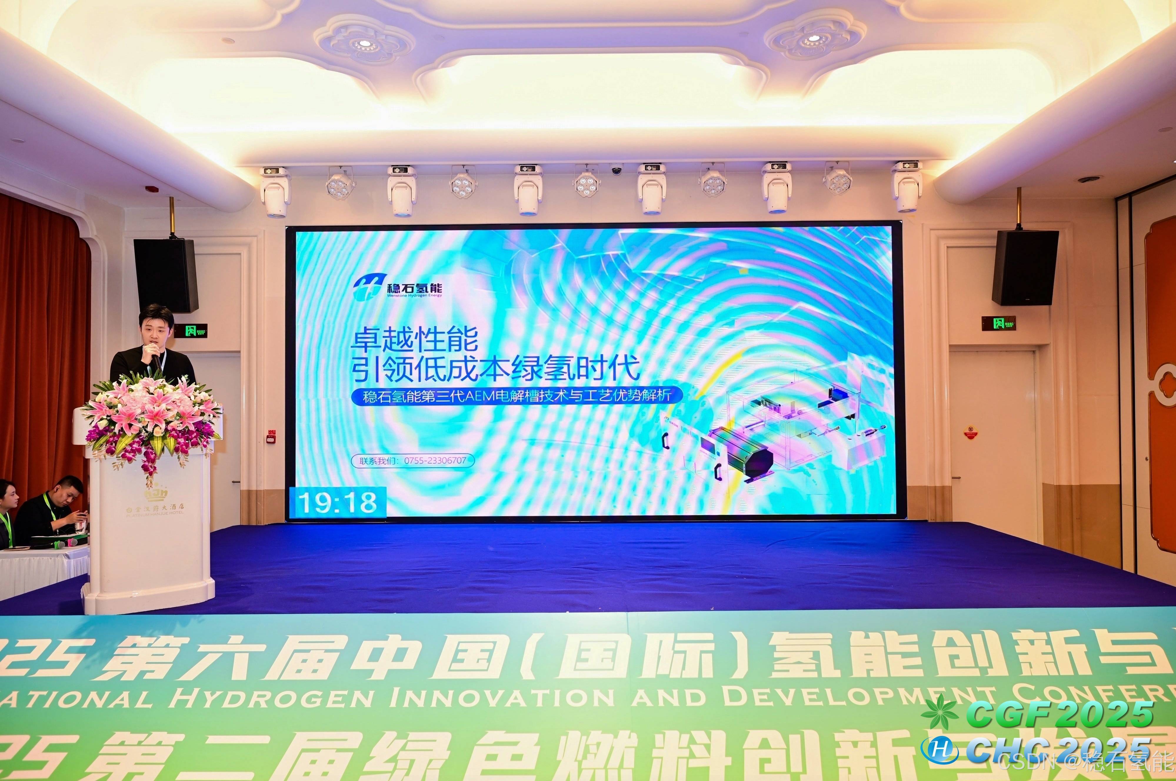 2025年3月3日,稳石氢能受邀参加CHC2025 第六届中国(国际)氢能创新与发展大会暨展览会,稳石氢能副总经理王一霖出席了主题论坛,向与会嘉宾分享了稳石氢能AEM制氢技术与装备工艺的最新进展。